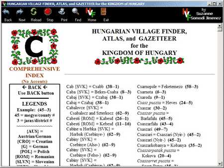 the Hungarian Village Finder, Atlas, and Gazetteer for the Kingdom of