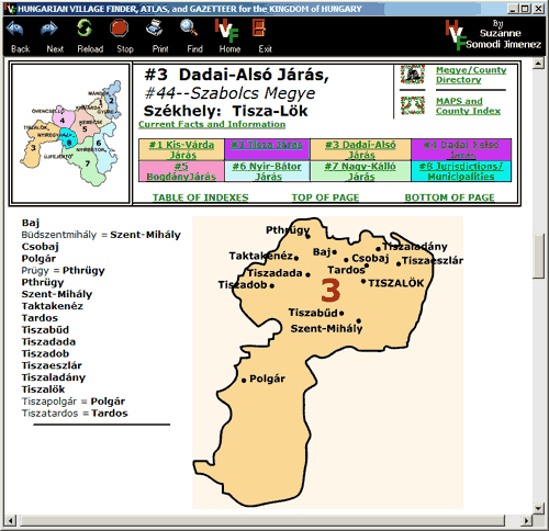 Atlas, and Gazetteer for the Kingdom of Hungary (website) and Hungarian Village Finder, Atlas, and Gazetteer for the Kingdom of Hungary (software) Copyright 2001-2006 All rights reserved. |